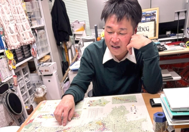 研究室の机上に置かれたフランスのワインマップ。テロワールを示している